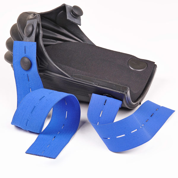 Deze gepatenteerde kniebeschermer volgt je beweging. De elastische plooien passen zich in elke positie en tijdens het lopen aan het kniegewricht aan. De padding is verwisselbaar en de knopen zijn onderaan bevestigd zodat de band niet door de knieholte gaat.